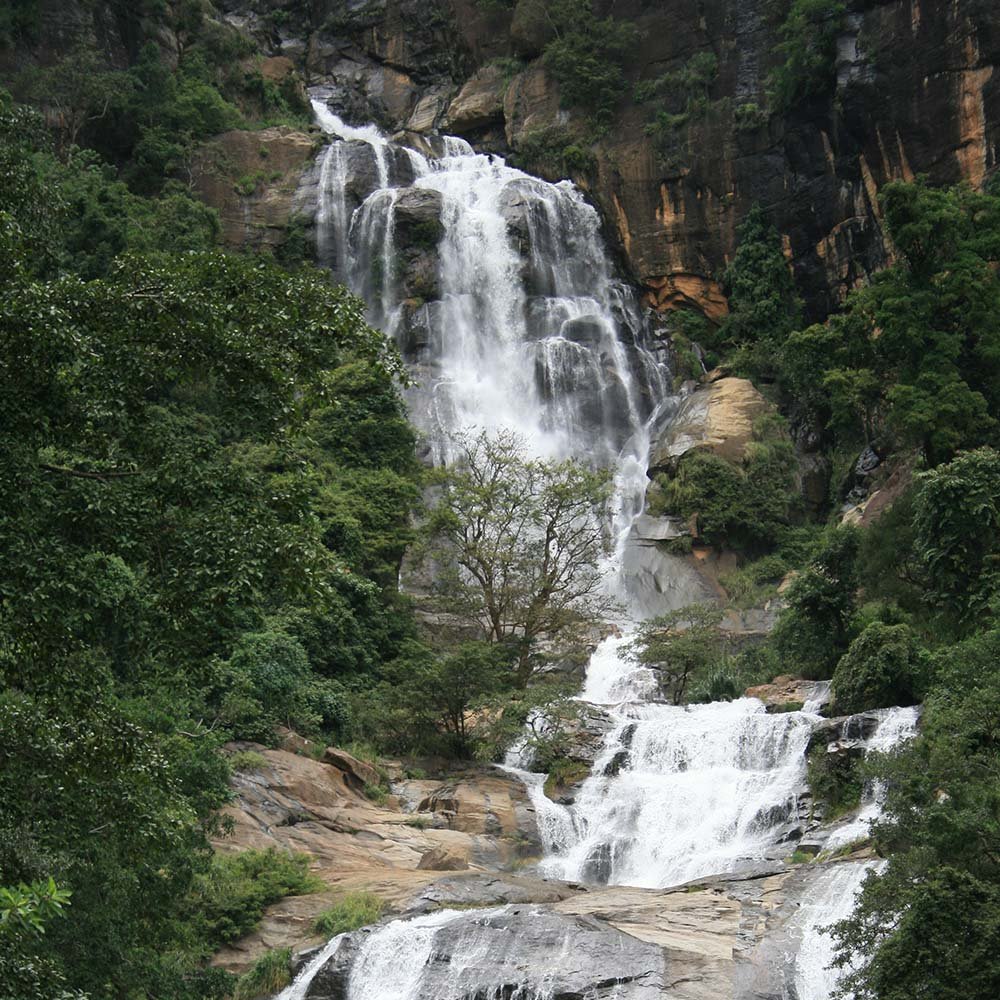 The magnificent Ravana Falls, where cascading waters and serene surroundings provide a perfect spot for photos, reflection, and appreciation of Sri Lanka’s natural beauty.