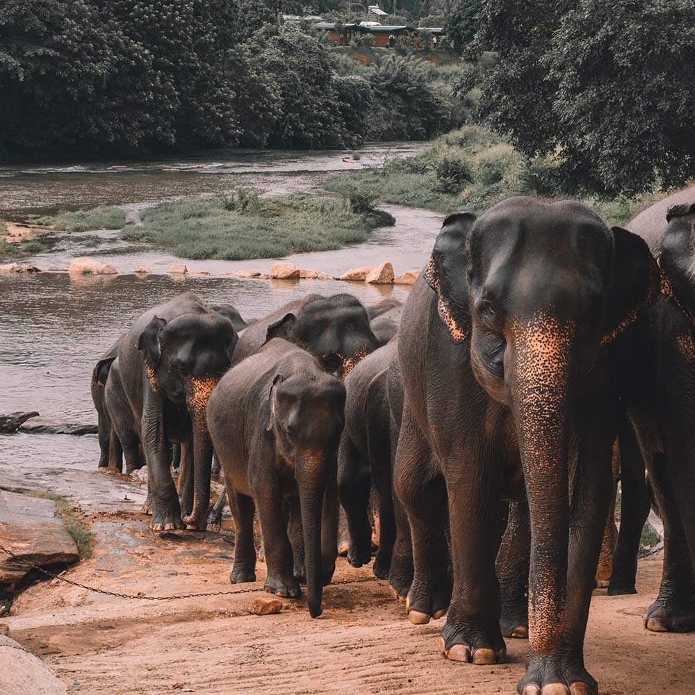 En route to Sigiriya, visit Pinnawala Elephant Orphanage which offers a heartwarming experience, where rescued elephants are cared for. Visitors can watch them bathe, feed, and roam freely in a natural riverside setting.